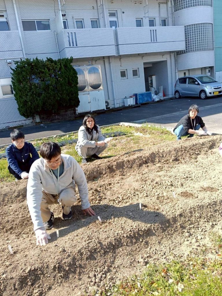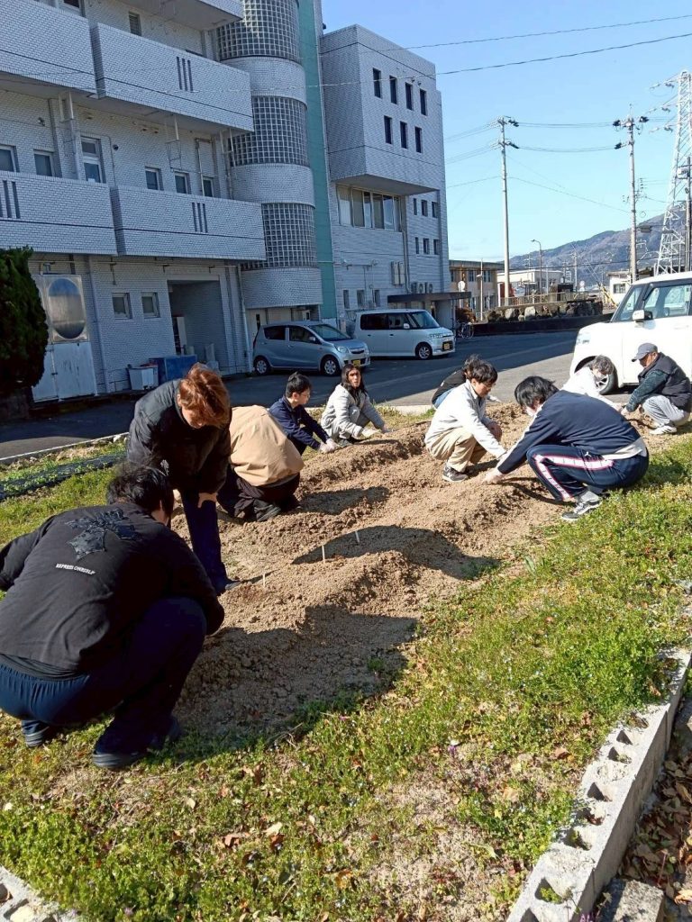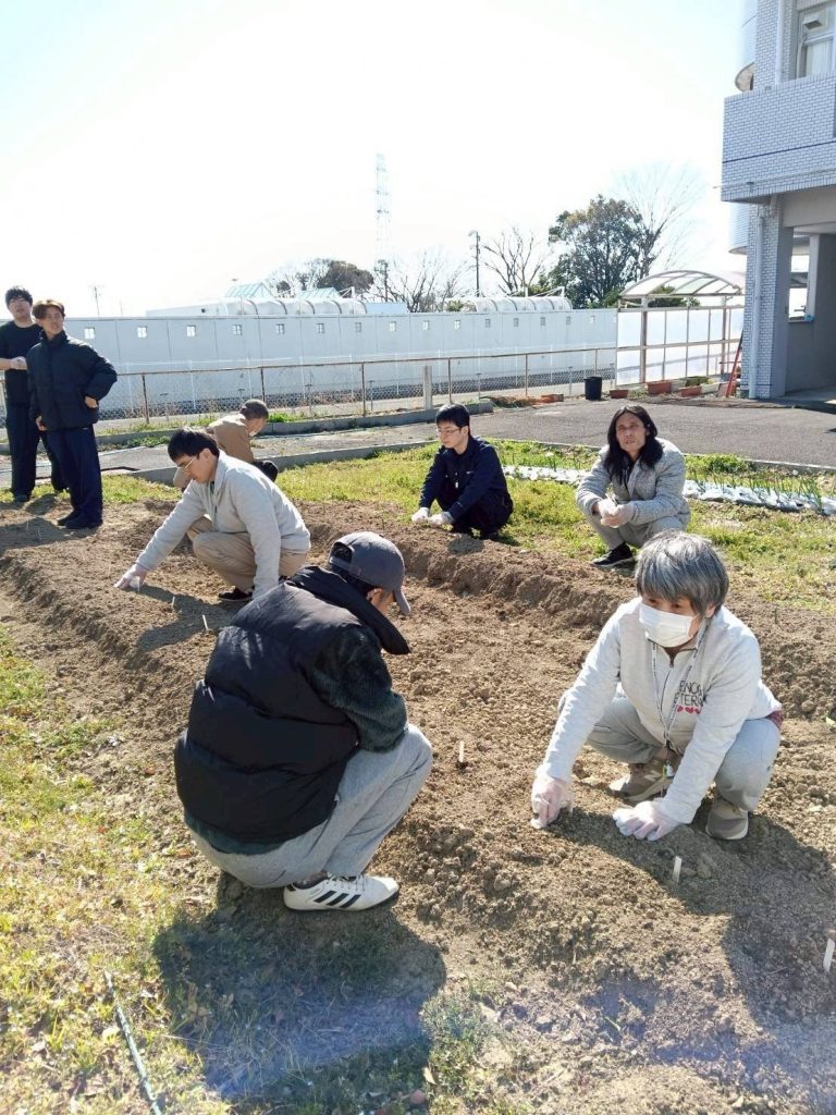 3/15㈰、職員の宇野さん主導のもと、利用者様達とサン神戸の家庭菜園場にじゃがいもの種芋を植えました☆